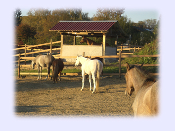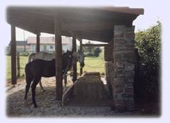 Unterstände auf den Paddocks dienen im Sommer als Sonnen- und im
